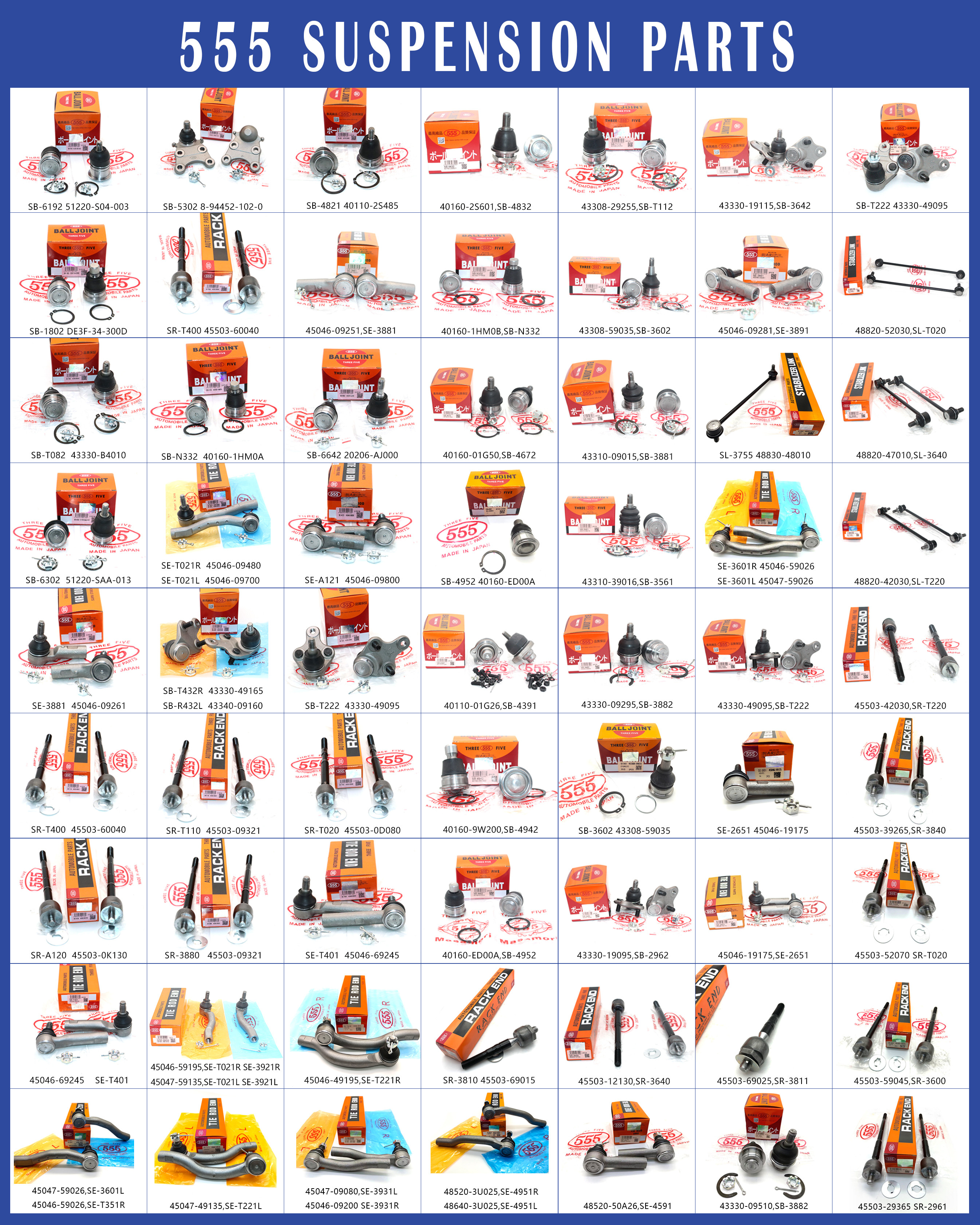 Q1: Wie viele Jahre ist Ihre Firma im Autoteile-Geschäft?A1:Unsere Firma wurde seit 2008 gegründet, es gibt mehr als 15 Jahre Erfahrung im Autoteilegeschäft. F2:Welche Produkte liefert Ihr Unternehmen?A2:Unsere Produkte umfassen eine vollständige Palette von Original-, OEM- und Aftermarket-Autoteilen für japanische, koreanische und deutsche Autos.F3: Welche Länder haben Sie exportiert?A3: Nordamerika, Osteuropa, Südamerika, Westeuropa, Naher Osten, Afrika, Südostasien usw.F4:Hat Ihr Unternehmen eine eigene Marke?A4:Unser Unternehmen hat eine eigene Marke REXWELL.F5: Was ist die MOQ für jeden Artikel?A5:Es hängt von den Modellen ab. Wenn wir Bestände für die Artikel haben, können wir die Menge annehmen, wie die Kunden verlangen, wenn nicht, können verschiedene Artikel unterschiedliche MOQ haben.F6: Was ist mit der Lieferzeit?A6:Normalerweise 3-7 Tage nach Bestellbestätigung, abhängig vom Vorrat.F7:Geben Sie Garantie für Ihre Produkte?A7: Grundsätzlich haben wir eine 1-jährige Qualitätsgarantie für Ersatzteile der Marke REXWELL.Q8: Haben Sie ein Zertifikat?A8:Ja, wie ISO: 9001, SGS usw.F9: Können Sie neue Produkte auf Anfrage der Kunden entwickeln?A9: Wir begrüßen Kunden, Proben zur Verfügung zu stellen, um die Produkte zu entwickeln, die sie benötigen.
